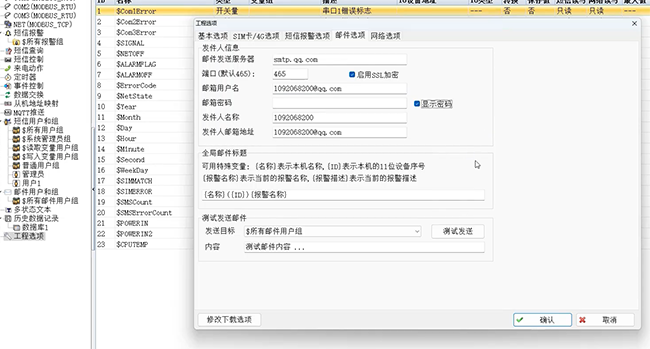 这里可以使用OPC561Q-CY这个型号来实现WINCC给您发送邮件。 硬件需求: 一个巨控OPC561Q-CY即可 使用巨控OPC561Q-CY和电脑用网线连接起来。 首先巨控OPC561Q-CY可以读取WINCC的数据,然后利用从WINCC读取的数据进行邮件配置。