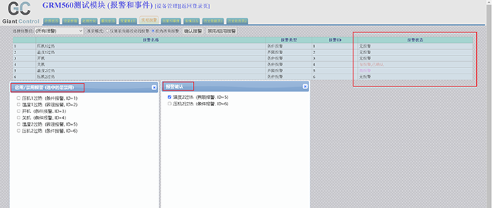 新款的GRM560,OPC560报警优势 1:网页上直接查看到你定义的每个报警的状态,是成立,还是无报警 2:网页上随时单独禁用,启用,和确认每一个报警 比如你测试的时候不想某个报警发短信,点一下就随时禁用了。 3:支持微信报警,分组权限推送。 4:模块内置支持邮件报警,不经过服务器中转,由模块直接发送邮件。 5:支持企业微信群,钉钉,飞书推送,不经过服务器中转,由模块直接推送到企业群。