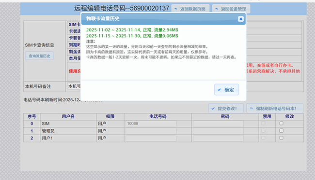 在使用巨控赠送的物联网卡的时候,现在新增可以读取物联网卡的一些数据。 首先在模块上网的情况下可以在登录模块之后可以查看前几日的流量使用情况。