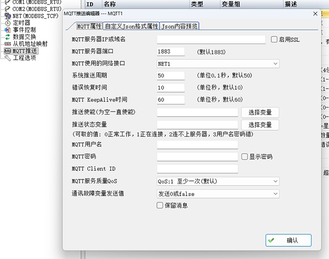 NET411-CY:1000点;2个隔离485,4个网口(交换机);网口可同时使用2种协议、8个设备;网口仅支持Modbus TCP,OPC,Smart200 PLC 该型号可以通过485通讯口采集MODBUS-RTU的数据。然后通过NET411-CY的内置MQTT协议把采集到的MODBUS-RTU的数据发送出去。